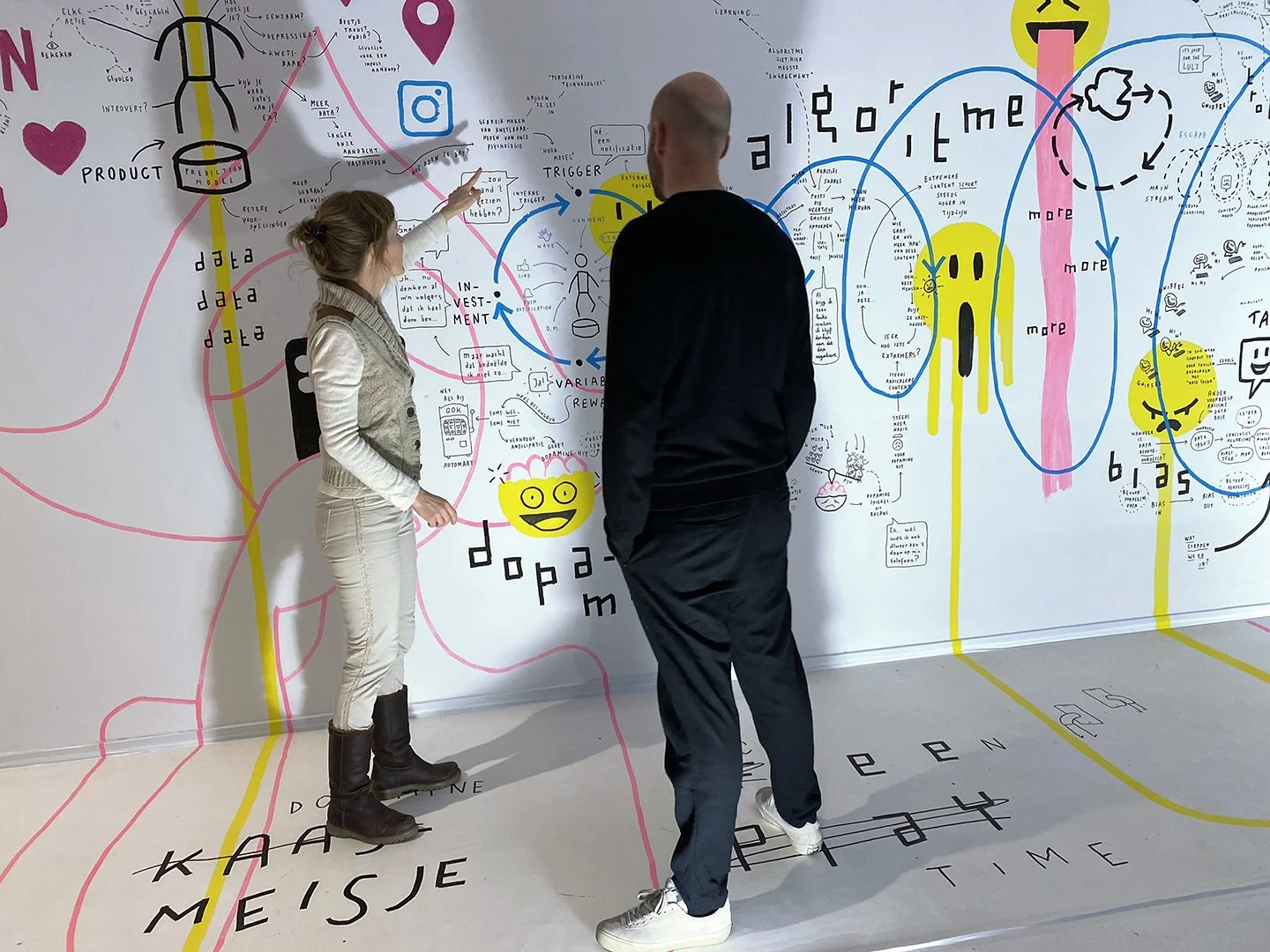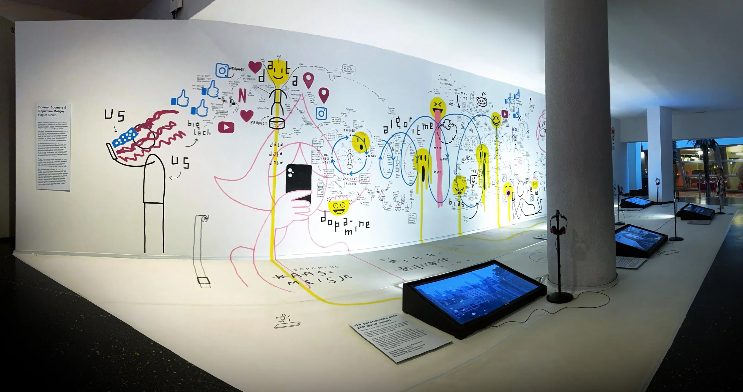 This installation investigates how these technologies shape our brains and how the internet accelerates their effects. The map examines their influence on different people, and focuses specifically on what social psychologist Jonathan Haidt calls ‘the anxious generation’.